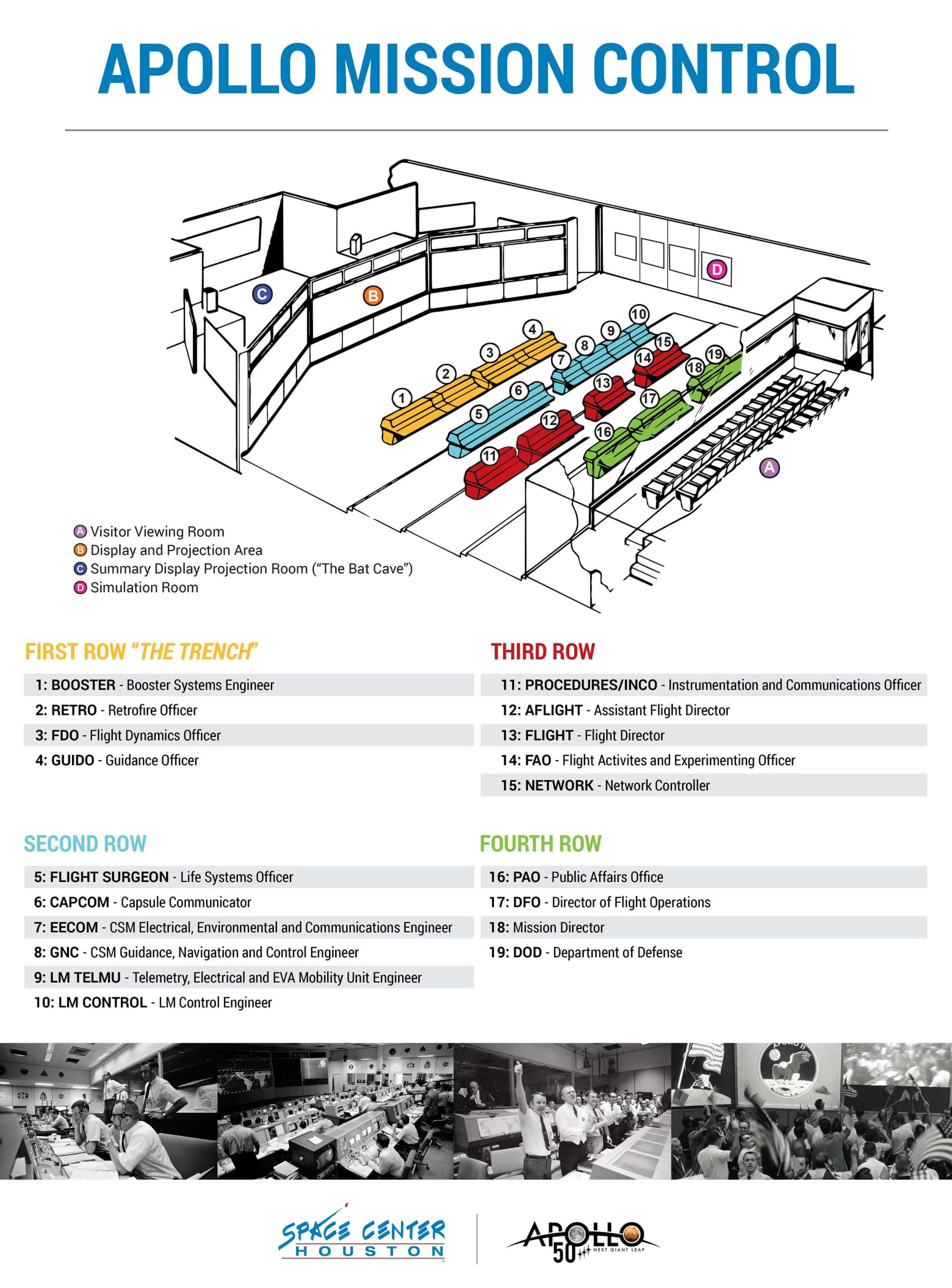 Historic and current high-resolution photos and graphics of and related to Apollo Mission Control Center are available for editorial use by journalists. Please credit the photo with Space Center Houston unless otherwise noted on each photo.