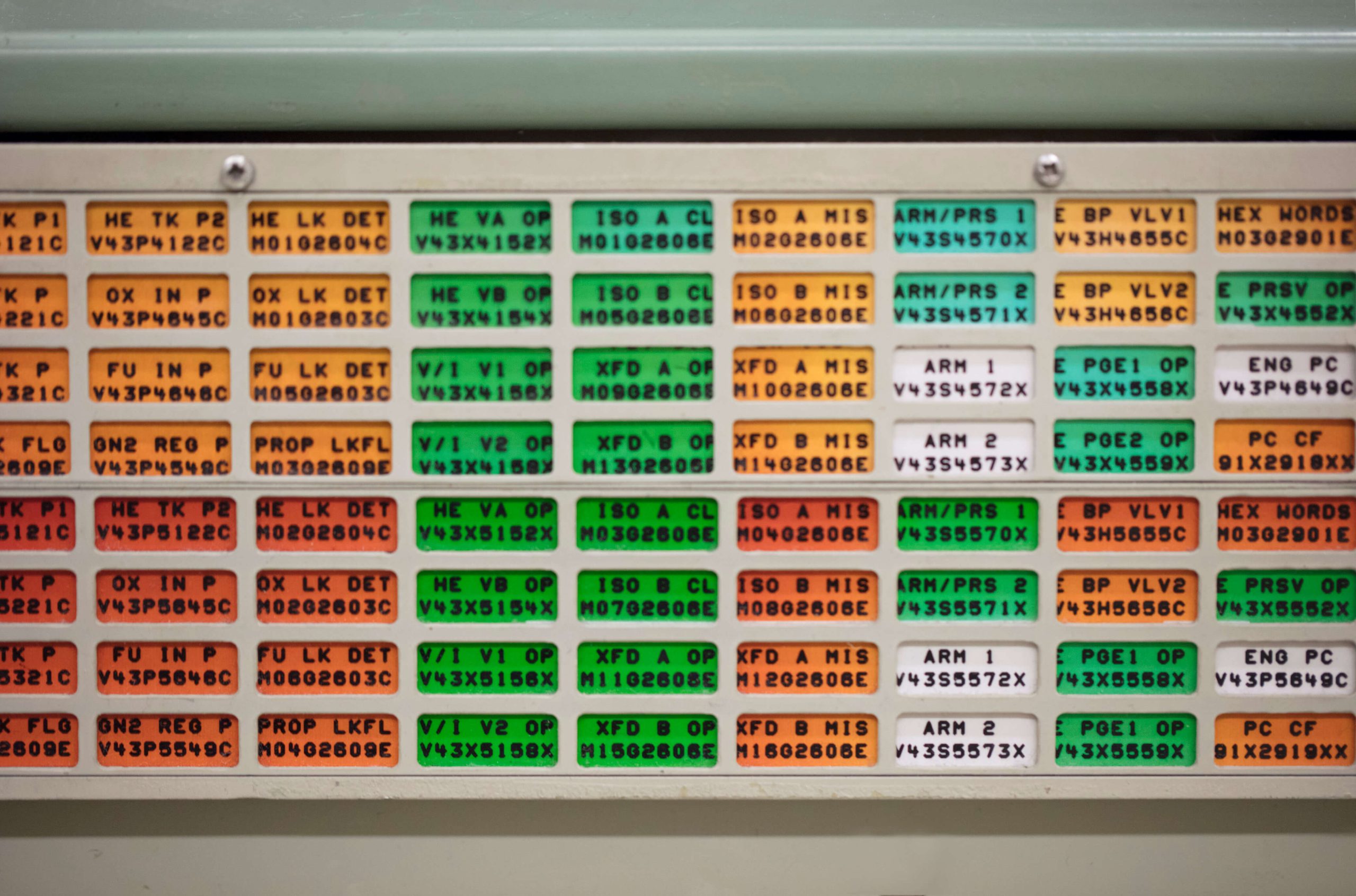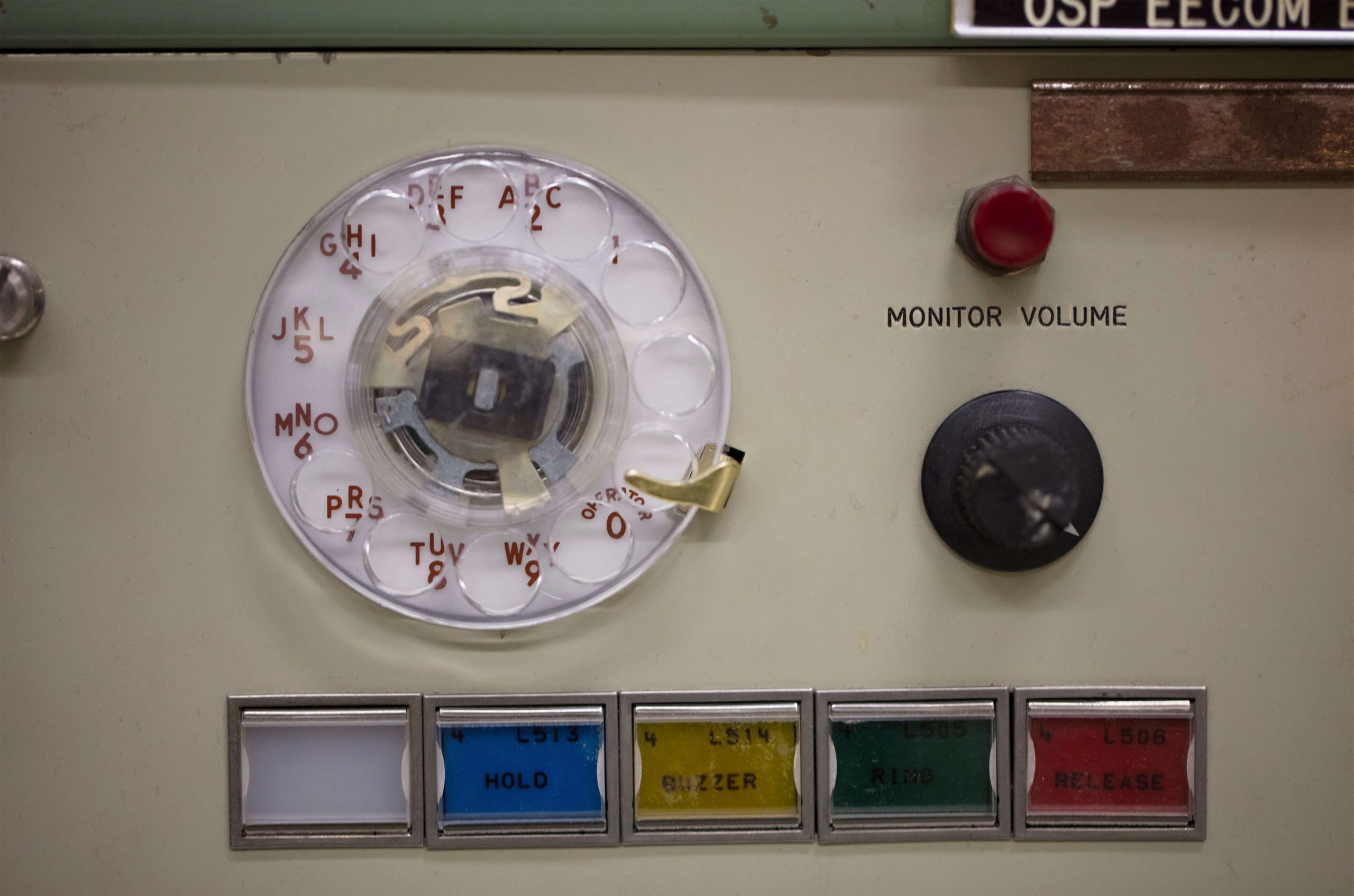 Flight controllers in Historic Mission Control didn’t have text messages or email to communicate with each other during the Apollo era. They used a Private Automatic Branch Exchange panel complete with a rotary dial to communicate with other controllers within Mission Control. After decades of use, the buttons have become faded, the paint has become scratched and the metal components have become rusted.