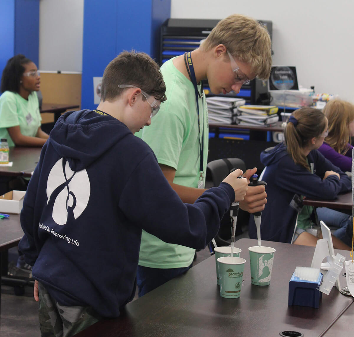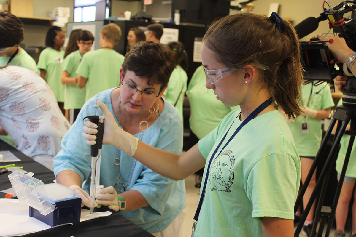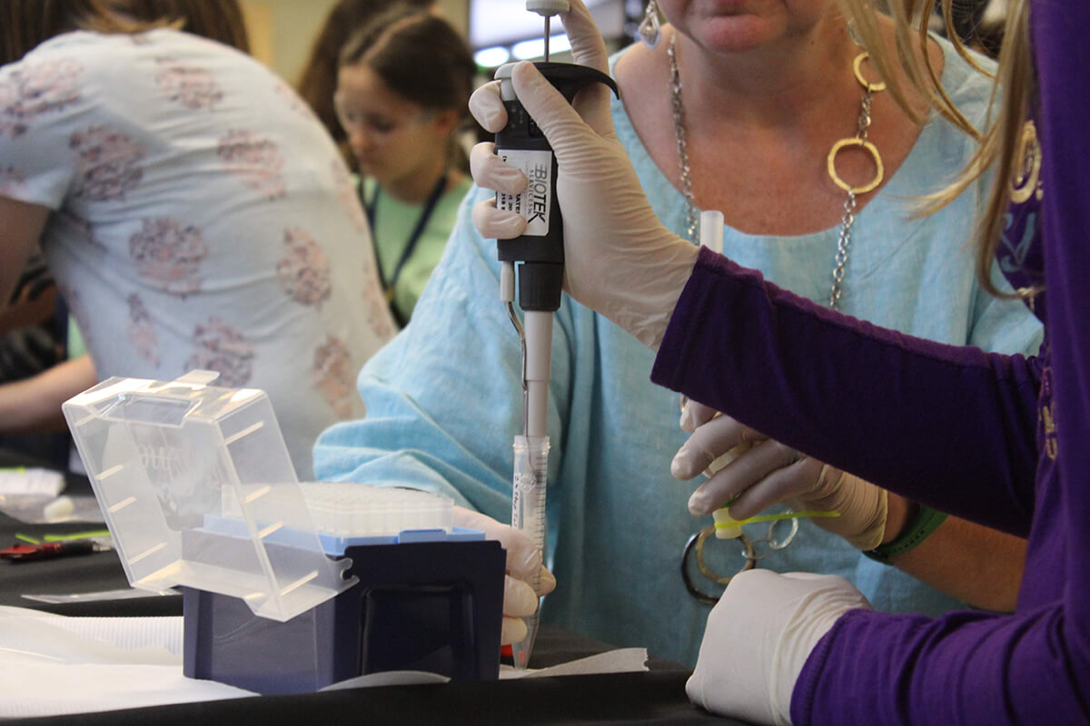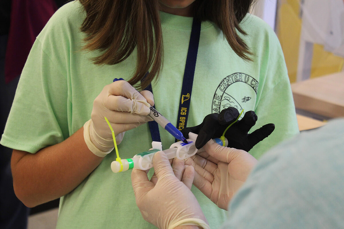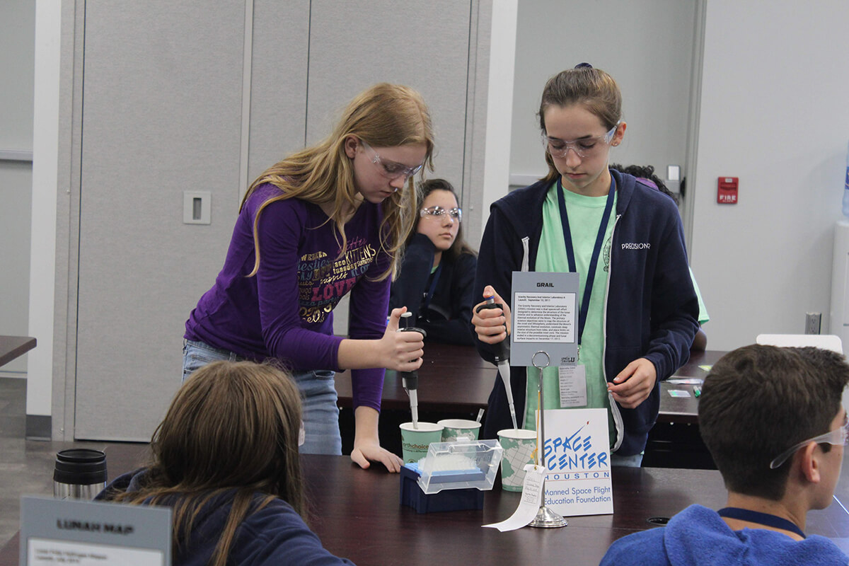 Their experiment launched aboard the SpaceX resupply mission and Space Center Houston held a launch viewing where guests performed the experiment to learn about DNA. Space Station astronauts then conducted the experiment aboard the floating laboratory and returned the experiment results.