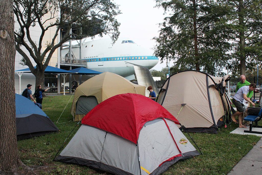 Pack your tent and set up camp under a twice-flown Falcon 9 rocket or in Independence Plaza, right underneath a Boeing 747, the shuttle carrier aircraft NASA 905, and our high-fidelity shuttle replica Independence. Prefer to cozy up indoors? All you need is a sleeping bag and a pillow to complete your campsite, surrounded by some of the rarest spaceflight artifacts on Earth.